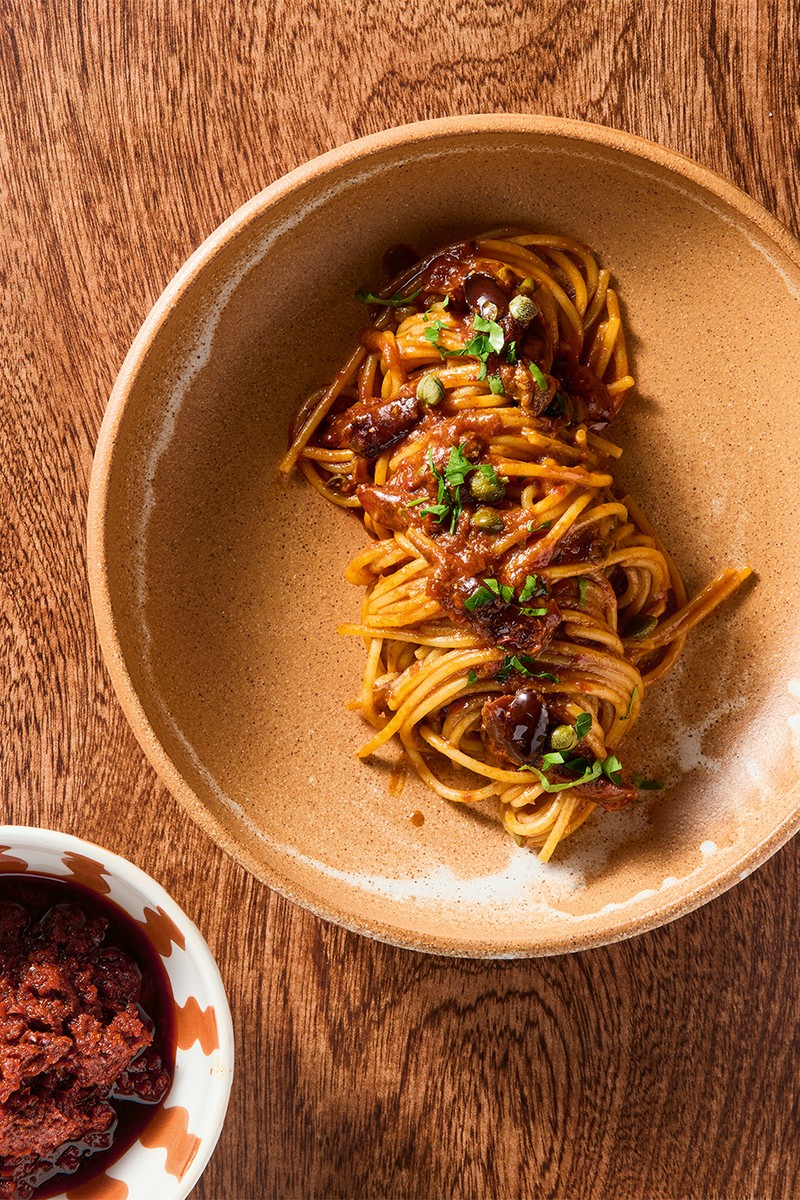 This is all about the tomatoes. Isle of Wight tomatoes bring sun-soaked sweetness, harissa adds a gentle kick, and the briny olives and capers do what they always do best: punch up the flavour. This one’s all about balance. Serve with crusty bread and a chilled glass of something dry and white.